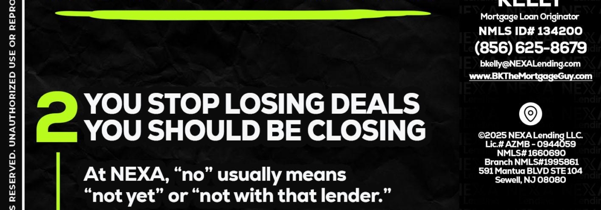 Hi, my name is Brian S. Kelly. I’m a Loan Officer with NEXA Lending LLC., offering personalized mortgage solutions, fast customized quotes, great rates and service with integrity.