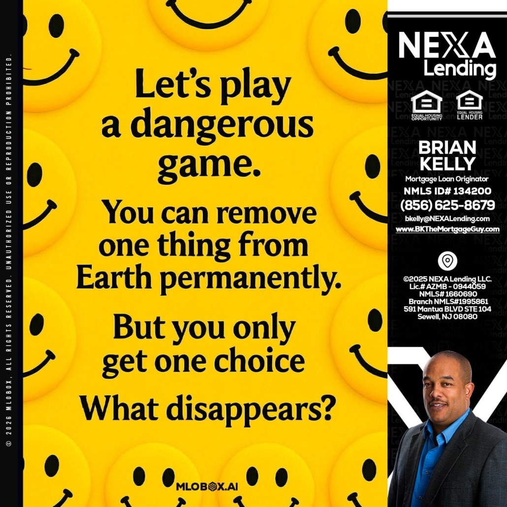 LETS PLAY - Brian S. Kelly -Loan OfficerHi, my name is Brian S. Kelly. I’m a Loan Officer with NEXA Lending LLC., offering personalized mortgage solutions, fast customized quotes, great rates and service with integrity.
